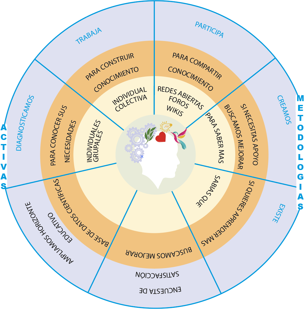 - Las metodologías activas cobran sentido al incorporarse como eje que dinamiza el aprendizaje y que coloca a quien estudia como agente central de aprendizajes propios y para sus pares.